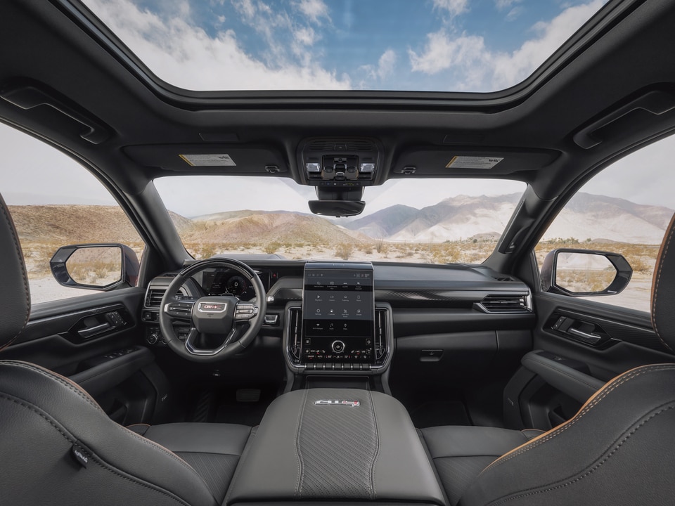 The centerpiece of the interior of the GMC Yukon XL is GMC's 16.8-inch diagonal Premium Infotainment System with high-contrast touchscreen display, intuitive navigation, wireless Apple CarPlay/Android Auto compatibility, and an array of connected apps and services. Available features like the 15-inch diagonal multi-color Head-Up Display and Rear Camera Mirror enhance visibility and awareness, while the Bose premium audio system with up to 18 speakers immerses you in rich, studio-quality sound.